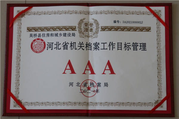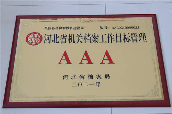 为进一步提升档案管理规范化精细化水平,提高档案的利用价值,更好地服务于住房和城乡规划建设管理工作,吴桥县住建局从“制度、培训、考核”三方面对征管档案进行梳理,进一步推进档案管理工作走向制度化、规范化和科学化。近日,该局获评2021年河北省机关档案工作目标管理AAA级单位。