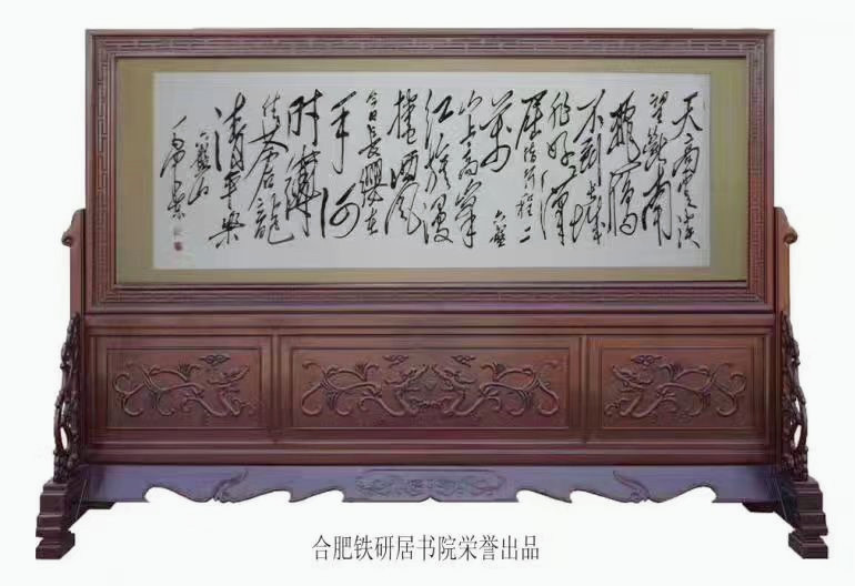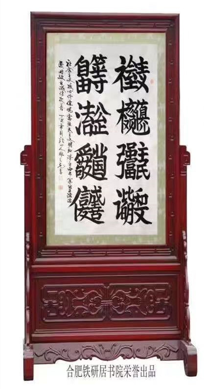 “吴山铁字”创始于明末清初,随着时代变迁历经兴衰。铁字书法独具特色,以锤代笔以铁作墨,取书法、国画章法布局,融雕刻、剪纸手法创意,经锻、锤、钻、焊、锉、磨等30多道手工技巧,将书法创意表现的风骨强劲,饱满生神,正所谓“百炼钢化为绕指柔”;被誉为“中华一绝”,深受海内外各界专家的高度赞赏。铁字书法规格:小到20公分,玲珑别致;大到10几米,气势恢弘。2007年“福”“佛”两幅创意作品定为北京奥运会指定纪念品。2000年铁字“十二生肖”获“国际专利技术博览会”金奖;2007年铁字“福”“佛”“鹰”获“国际文化创意产业博览会”、“奥运纪念品创意设计研讨会”两项金奖;2008年入选安徽省非物质文化遗产名录,2013年荣获“中国第七届文博会”金奖;2017年荣获“中国工艺美术精品博览会”金奖。2011年荣获“中国第五届文博会”金奖,2011年获安徽省文旅品示范企业,2012年获“中国第六届文博会”金奖2013年荣获“中国第七届文博会”金奖,2014年荣获“安徽省非遗精品展”金奖,2014年“合肥铁研居书院”被列为“合肥首批非物质文化遗产”传习基地。