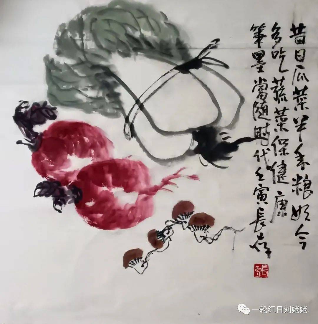 昔日瓜菜半年粮,如今多吃蔬菜保健康,笔墨当随时代!