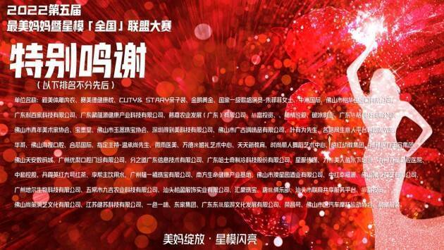 大赛保持初心,以培养妈妈与星儿为导向,聚焦为中国妈妈、中国星儿而建,为振兴中华而建,紧贴赛事发展客观实际,深入研究思考,积极贡献智慧力量,提供赛事的创新理念,让大赛成为国内一流的品牌赛事,为进一步营造社会关注支持赛事建设的浓厚氛围助力。 特别鸣谢以下单位,对本次大赛的大力支持,以下排名不分先后!