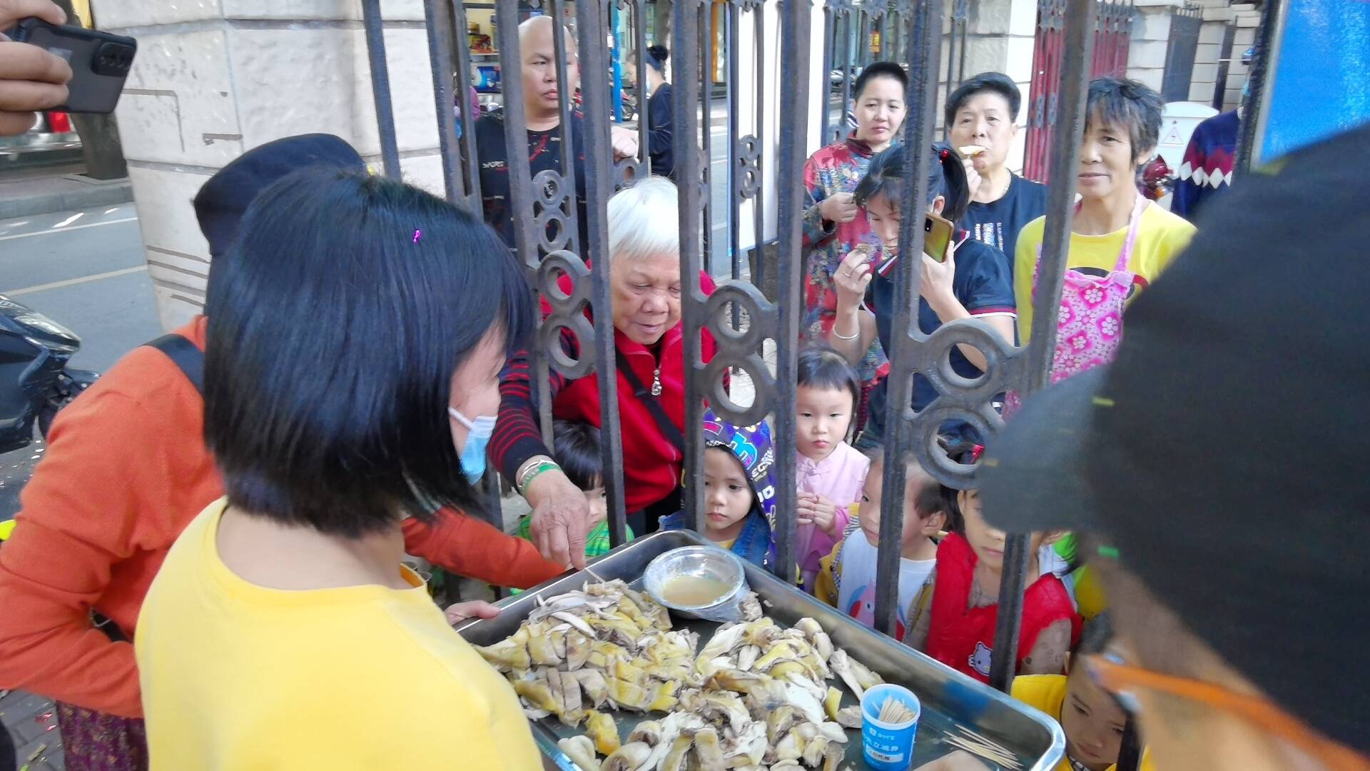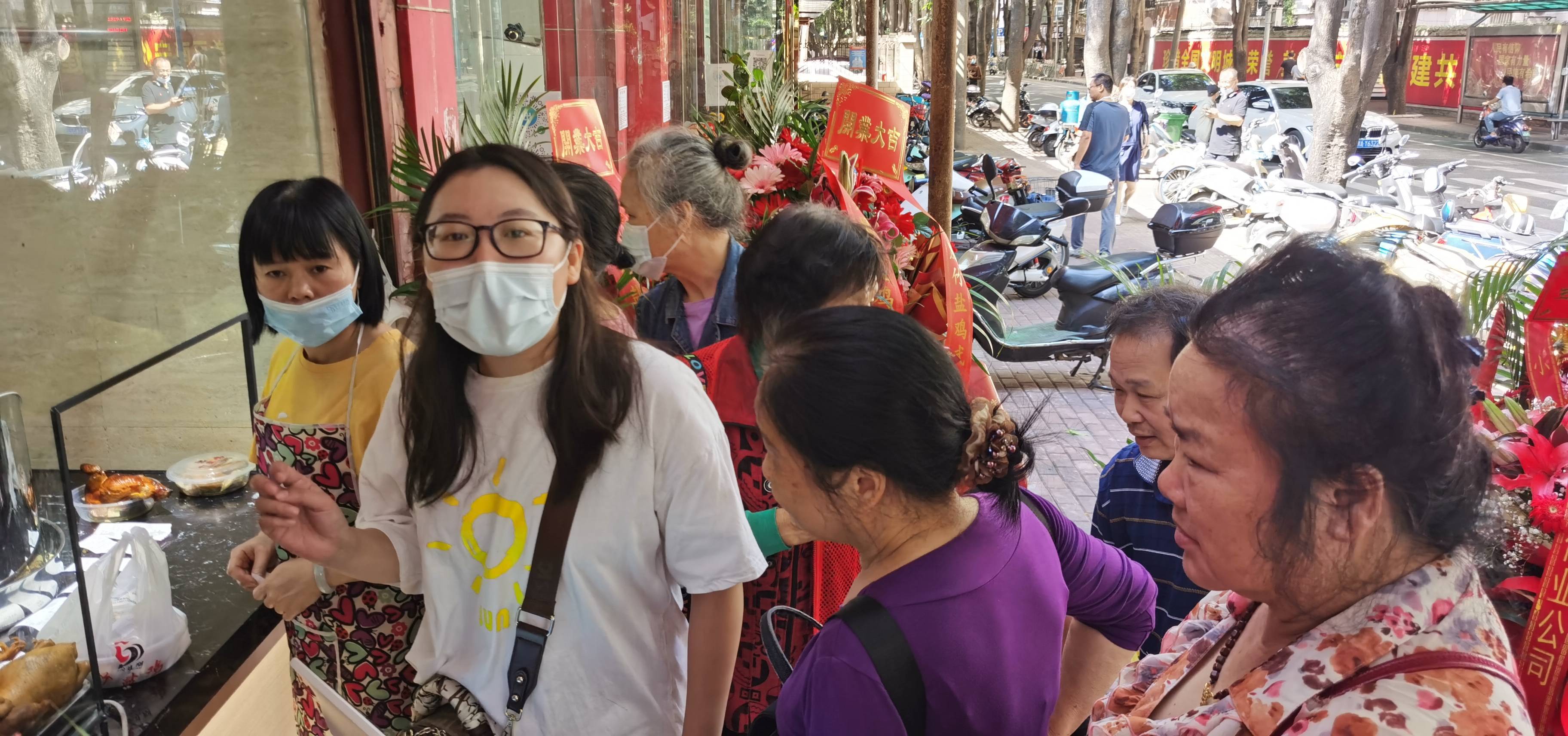 开业当天市民免费品尝竹盐鸡现场。