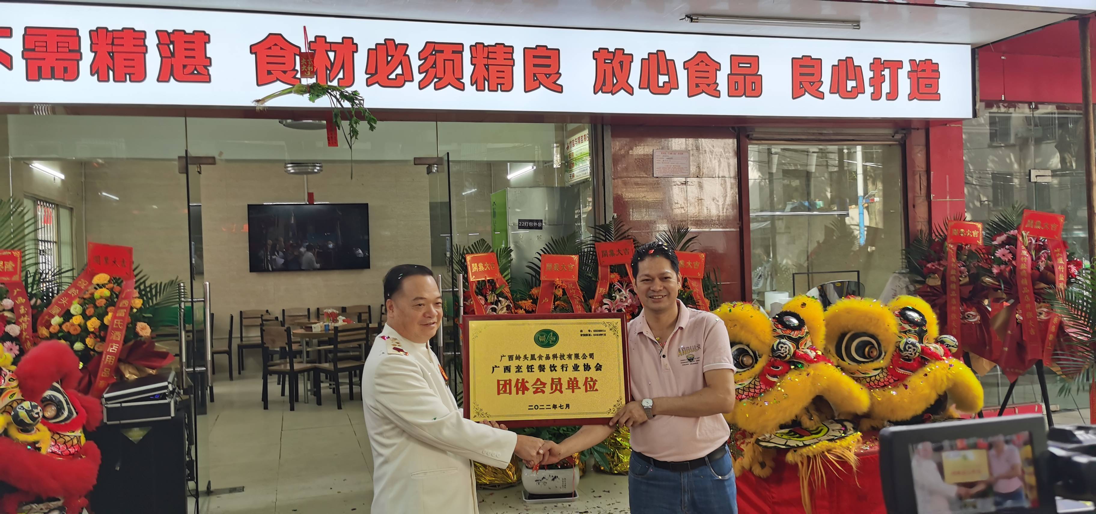 广西烹饪餐饮行业协会闭思维主席颁发”团体会员单位“牌匾。