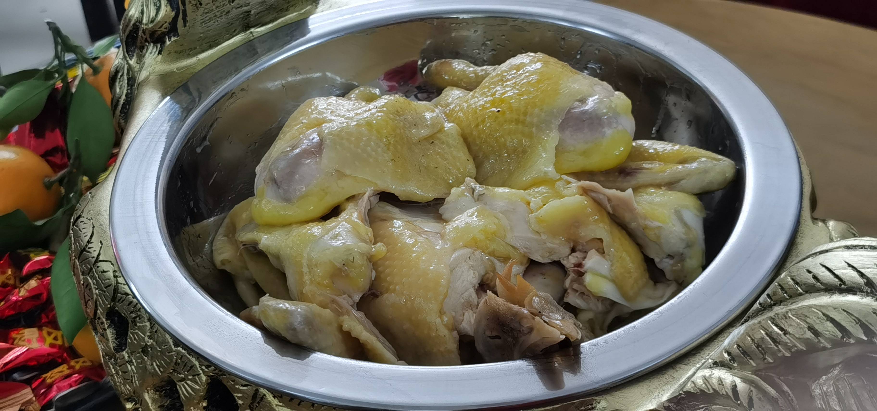 切好的原味竹盐鸡。 |