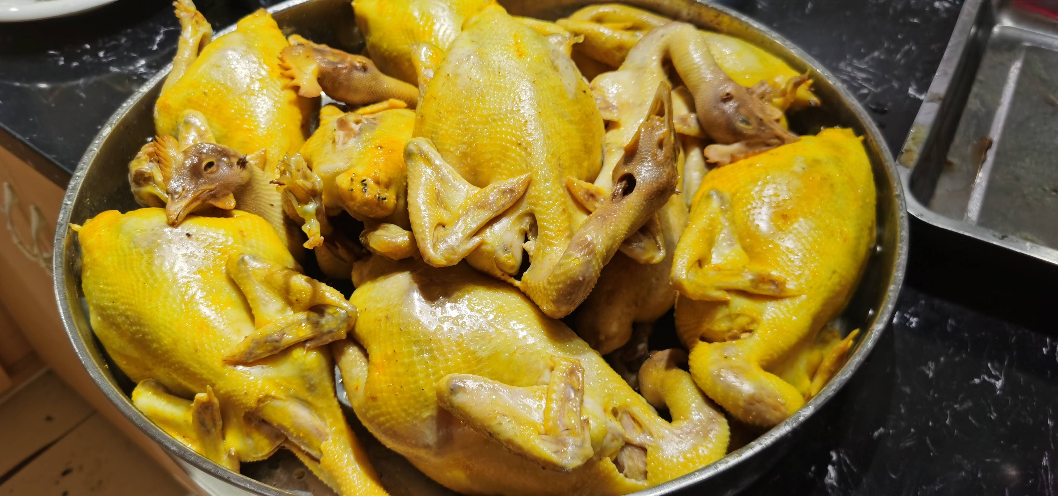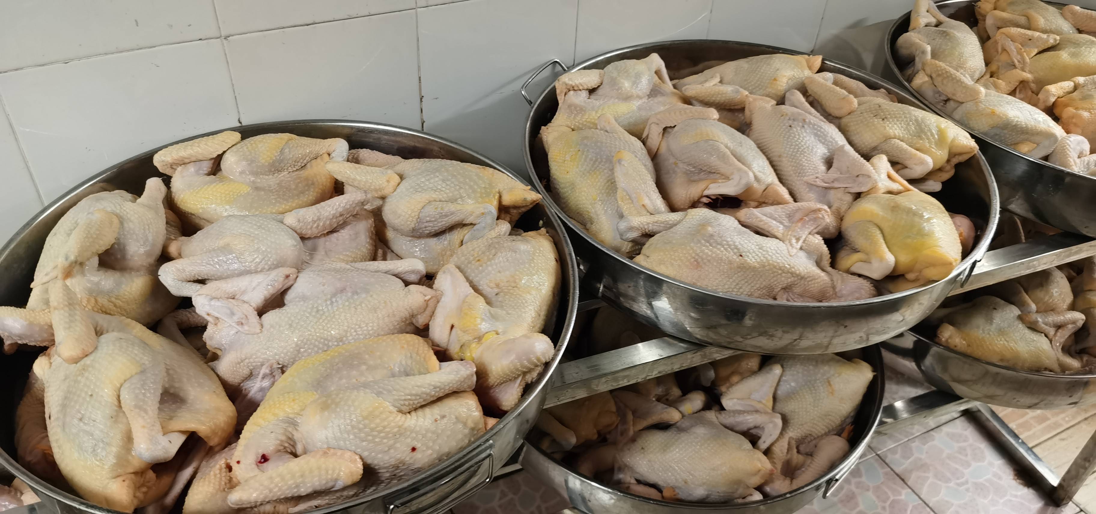 开业当天排队购买现场。 小编曾经看着朱总在抖音上拍摄的视频教材,在家里反复的做了几次”鸡“,但是口感都比不上“岭头凰”竹盐鸡店里买的。后来多次研究发现,所用的食材不一样!岭头凰竹盐鸡的创始人朱总跟小编介绍了一下,“岭头凰”竹盐鸡是以农家散养土鸡和竹盐为原料,用110°C的蒸柜整只隔水蒸40分钟的方法蒸制。竹盐鸡吸取白切鸡之长,而避其之短,制作的方法和配料与传统的方法也不同。竹盐鸡是用隔水蒸鸡的工艺,蒸制出的竹盐鸡,皮黄肉香,有点白切鸡的的味道又有盐焗鸡的口感。尤其是刚刚出炉的竹盐鸡,热气腾腾的,咬上一口,油而不腻,鲜嫩的鸡肉、香甜的味道在舌尖里回荡。闭上眼睛,满满的幸福感,吃出了土乡情味。