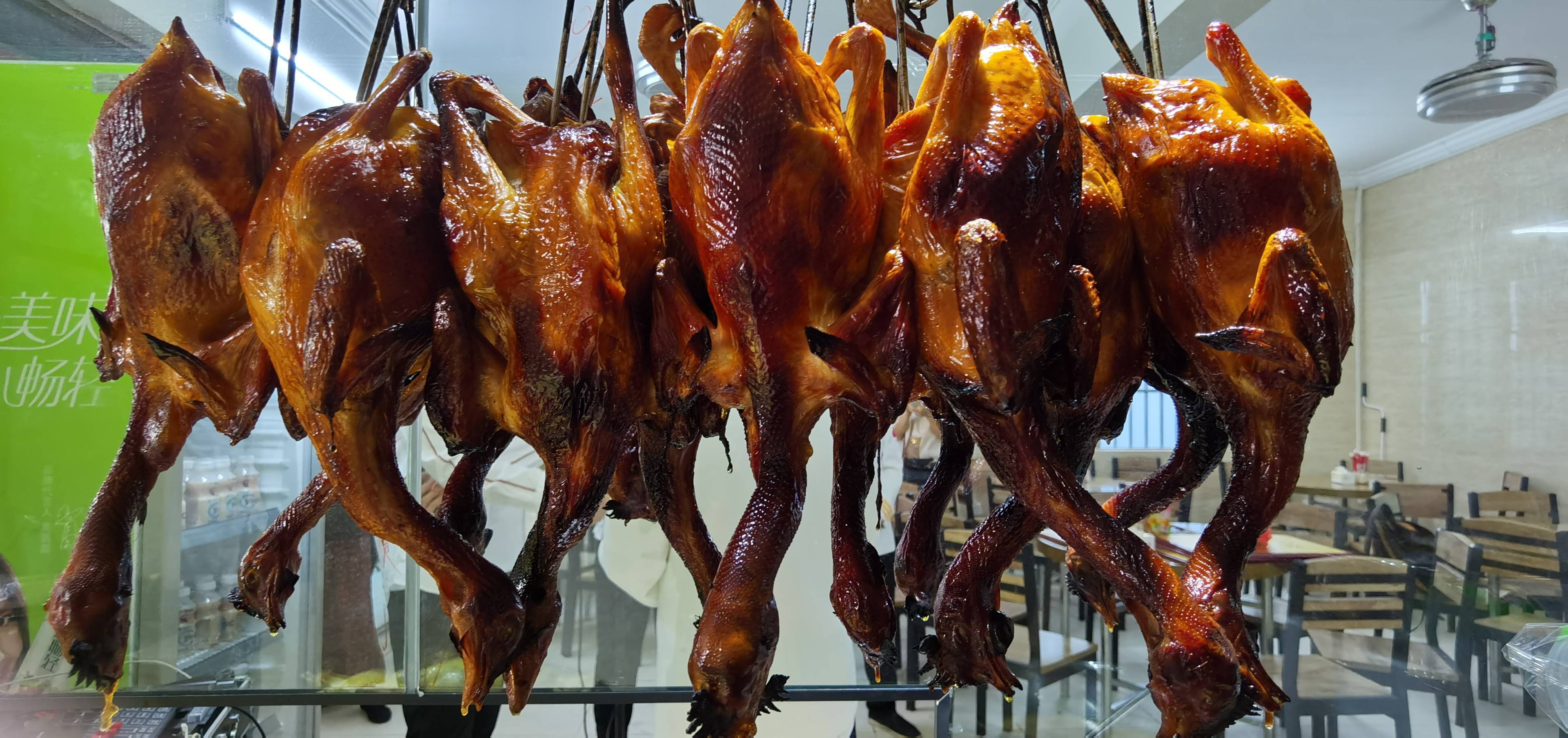 刚刚出炉的吊烧竹盐鸡。