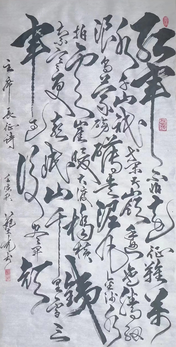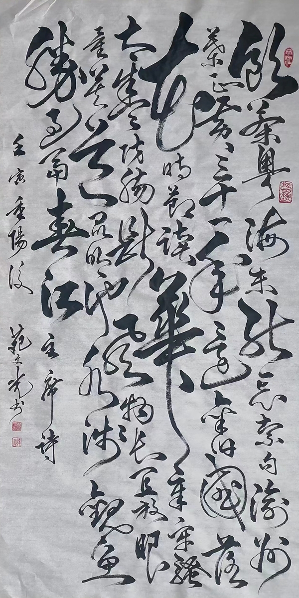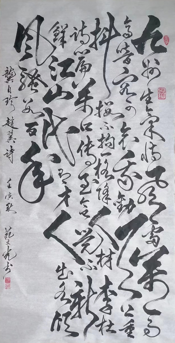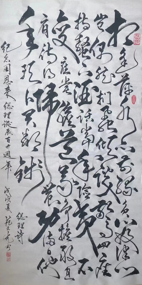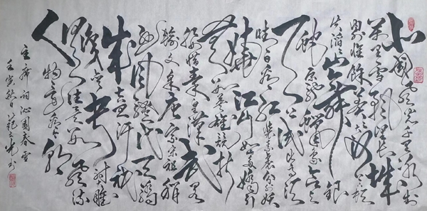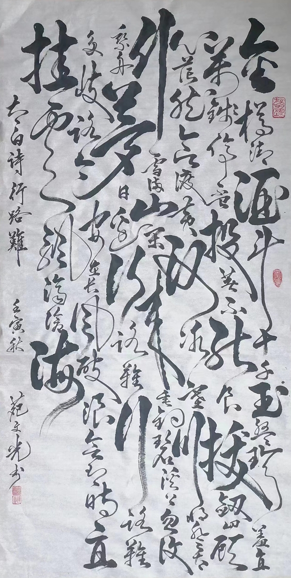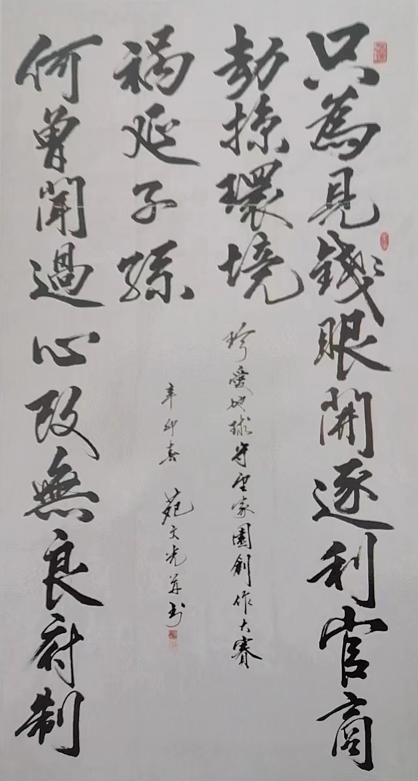 苑文光,男,出生年月: 1948年2月,原籍山东。69年前天津在学,大专学历,69年下乡内蒙古土右旗插队,71年选调包头市五七师范,74年入包头市第九中学任教,中教高级。主教历史科,兼教书法,多年来培养出不少人才喜好书法,自学成才各体书法均有涉措,主攻草书在近几年各大赛,多次获金奖,中国书法史学会理事、中国艺术促进会顾问、中国国学研究会研究院、北东方翰林书画院副院长、中国诗书画联盟主席团名誉主席。