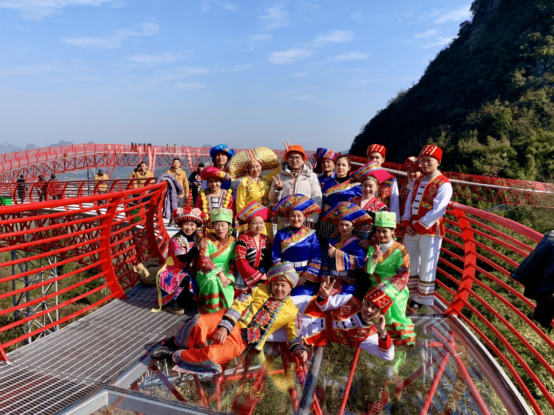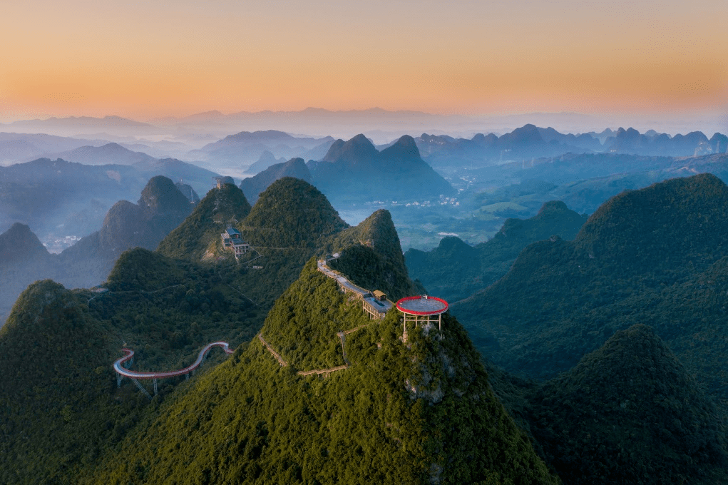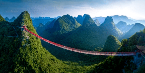 玻璃栈道 位于如意峰景区最高点的如意云顶观景台,是人们祈福如愿的吉祥圣地,是一个360度全方位观景平台。置身其上,远眺溶岩峰林、田园山水、路桥村舍,自然融合,天衣无缝,尽纳天地之奇观。再挂上一枚承载着对健康、学业、事业、婚姻、生活五福临门美好期待的吉祥带、祈福牌,共同祈愿,岁月静好,家国长安。让吉祥、如意、好运、幸福与你常相伴。