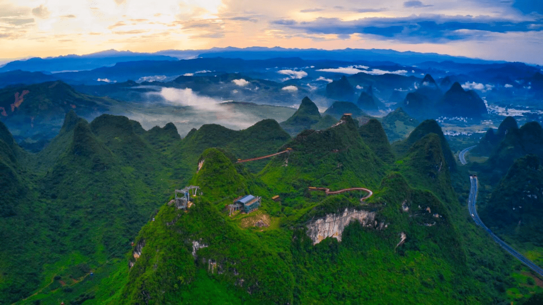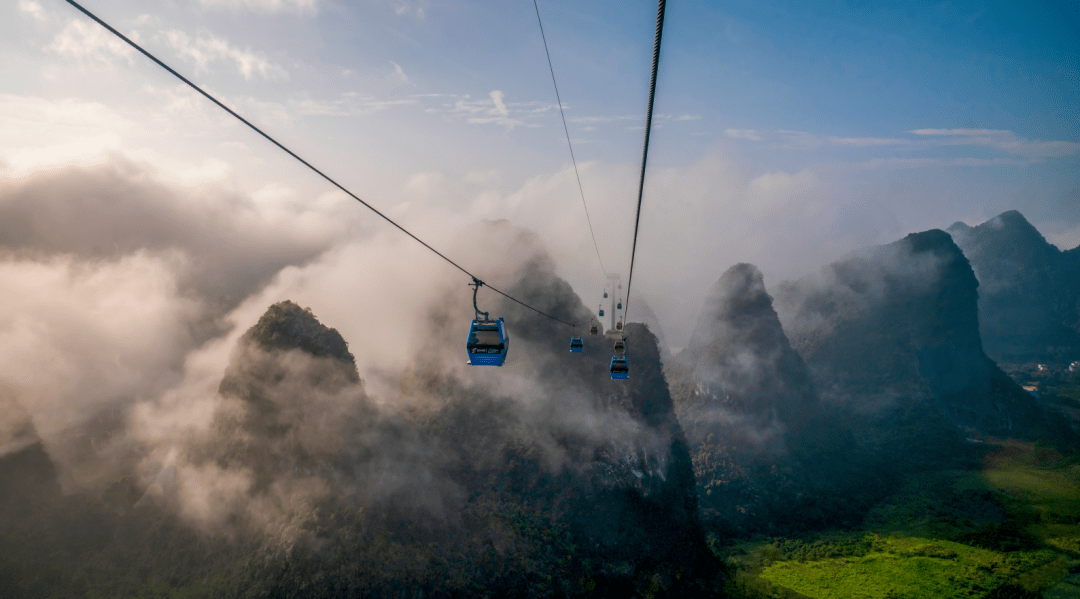 在距阳朔奇峰美景、田园秀色、如诗如画的“十里画廊”5公里的地方,一个新晋成为桂林旅游网红打卡地、旅游新亮点的如意峰景区,深受众多游客青睐。 桂林阳朔如意峰景区,是一个从无到有,以索道为载体而衍生出的自然风景区;是利用客运索道独特的交通、观光、体验和娱乐的功能,通过游步道、如意云顶、如意索桥、林中漫步道、玻璃栈道、观景平台等创意设施,将“三峰两谷”(元宝峰、如意峰、项链峰、彩溪谷、百花谷)打造成为了高空俯瞰峰林美景,感受闲步山林乐趣的观光、体验平台,是新视角全方位观赏阳朔喀斯特峰林平地拔起、千姿百态的最佳地之一。