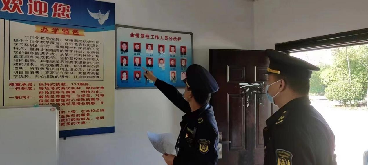 2022年11月2日岳阳市君山区交通运输局综合行政执法大队联合君山区市场监督管理局对岳阳市君山区金桥驾驶员培训有限公司进行“双随机、一公开”联合抽查工作