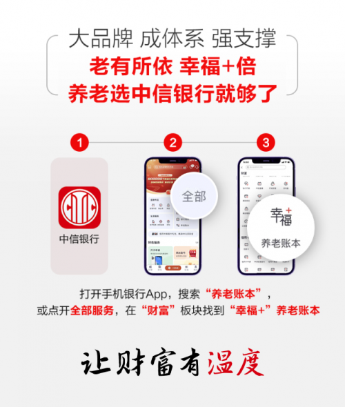 个人养老金资金账户的准备工作正紧锣密鼓开展。据悉,中信银行与人社部个人养老金信息管理服务平台于2020年启动对接,从2022年起先后与多家金融产品行业平台启动对接,并积极参与各相关平台组织的多轮多方联合测试。在合规前提下,重点开展从开户、缴存到投资交易等全链路能力建设,满足不同客户的场景需要,着力打造一个多渠道、多功能、多场景的个人养老金资金账户,为客户提供全周期的便捷的个人养老金管理服务。 财富管理是中信银行的特色,养老产品正多点开花。作为养老理财试点机构之一,中信银行子公司信银理财的养老理财产品发行方案已报送监管审批,待审批通过后将在中信银行上线代销。同时,中信银行除上线了百余只市场上主流公司的养老FOF产品外,还专门同华夏基金、华安基金、中欧基金等公司定制了中信银行托管的养老FOF产品。此外,中信银行积极对接三支柱养老保险产品,在现有传统商业养老保险产品以及税延养老年金产品外,同时与国内头部寿险公司,养老险公司对接专属商业养老金产品,共创创新型养老金产品,打造养老金融品牌。 养老账本和养老规划服务可以帮助客户归集养老资产,发现养老缺口,一站式办理养老相关的业务。中信银行2022年5月率先在业内推出“幸福+”养老账本,实现了养老资产的归集展示,为客户提供一个跨周期、跨平台、跨资产类别的养老服务平台。 值得关注的是,中信银行不仅为未老人群提供养老财富规划服务,也为已老人群提供丰富的养老金融+非金融服务,在养老账本的“幸福+俱乐部”功能区,客户可以看到为老年客户提供的财富、健康、学院、优惠、舞台、传承六大服务体系,以满足客户“老有所养、老有所医、老有所享、老有所学、老有所游、老有所乐”的品质养老需求。 居民的养老财富管理还需要更加专业的人才提供服务。中信银行于今年4月,联合清华大学启动了银行业首支养老金融规划人才队伍培养项目,目前已完成首批队伍认证,预计到年底前,将覆盖1200名分支行销售及财顾人员,约占全行销售及财顾人员的30%。 今年中信银行还将发布《中国居民养老财富管理发展报告(2022)》,通过对客户和市场养老痛点的洞察,分析行业供给,提出价值主张。 中信银行打造从账户开立到产品购买,再到全生命周期陪伴的养老金融服务生态,已然成型。 三大支柱 考验银行综合金融服务能力 养老事业和养老产业发展受到党和国家高度重视。《高举中国特色社会主义伟大旗帜 为全面建设社会主义现代化国家而团结奋斗》报告(以下简称“报告”)中从“增进民生福祉,提高人民生活品质”的角度阐述了养老事业和养老产业的发展方向,即“实施积极应对人口老龄化国家战略,发展养老事业和养老产业,优化孤寡老人服务,推动实现全体老年人享有基本养老服务”。 建立养老金第三支柱是当前我国完善多层次社会保障体系建设的重中之重。商业银行在养老第一、第二支柱管理中积累了丰富经验,参与第三支柱建设,既是响应国家号召、履行社会责任的具体行动,也是服务民生、寓义于利的经营举措。 对于银行而言,如何才能更好地发展个人养老金业务?优质的养老产品是养老财富管理行业的压舱石,立体化的养老金融服务体系是养老财富管理行业“行稳致远”的风帆。 银行具有全产品销售牌照,在银行的平台上,客户可以购买到所有类型的养老投资理财产品。中信银行发挥协同优势,基于“十分精选”专业的产品研究和筛选能力,为客户精选了优质的、满足养老投资理财需求的银行理财、商业养老保险、公募基金等运作安全、成熟稳定、标的规范且侧重于长期保值增值的各类养老产品,以满足客户全周期、多层次、多元化的养老规划需求。 从功能来看,综合化金融服务能力的整合是账户体系建设的关键,银行以账户为核心,将养老规划、养老产品、养老服务等各类业务归集整合,根据客户的养老需求提供综合化金融服务,这是大势所趋。