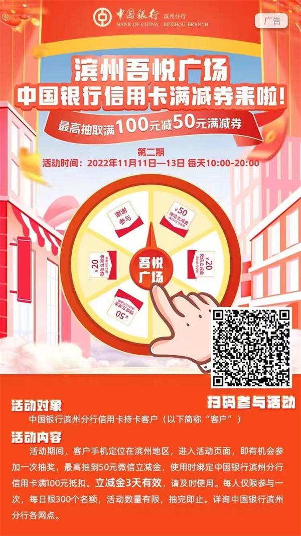 滨州吾悦广场中国银行信用卡满减优惠券第二期火热来袭!
