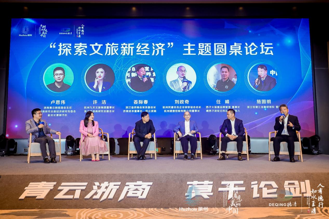活动现场来自浙江省浙商研究会轮值会长,杭州林东新能源科技股份有限公司董事长林东作为资深浙商,带来了“共富浙江 创造未来”的主题分享,历届青云浙商企业代表也将共富路上的故事、最新的创新理念带到了现场。本年度的十大浙商好声音、最可能改变未来世界企业榜、最具想象力企业榜、最具投资潜力企业榜、最佳转型升级企业榜、最具正能量企业榜单也在本次颁奖盛典中一一揭晓。作为活动的重要内容之一——圆桌论坛,以“探索文旅新经济”为主题,由浙商青云榜组委会主任卢恩伟主持,风云浙商代表、侨商资本董事长姜际春、杭州市民建企联会会长刘政奇、九天文旅董事长许洁、钱塘江金研院董秘施圆明、西子火锅宴董事长任峰论剑莫干,做了深入探讨和建设。