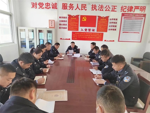 11月7日,太清宫派出所在党支部书记李勇组织下全体民辅警学习贯彻党的二十大精神会议。![]()