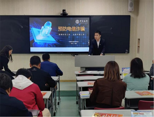 为进一步加大反诈宣传力度,打击电信网络诈骗,切实增强学校师生的防骗意识,提升自我保护和风险防范的能力,帮助广大师生群体守护好“钱袋子”,11月7日 ,中行丽水青田东苑支行行长朱越携副行长叶静静与个贷经理舒骁傲,前往青田县平演小学开展“紧绷防范之弦,远离诈骗之害”反诈知识宣讲活动,为该校师生带去一堂生动的反诈知识课。 “你们接到过陌生人的电话吗?知道什么叫‘杀猪盘’吗......”朱行长用简单的提问引出什么是电信网络诈骗,为大家仔细地分析了“杀猪盘”、“网络贷款诈骗”、“巨额来电”三类常见电信网络诈骗的手段,并向大家讲解防诈骗小技巧“三不一要”原则,还给大家发放了反诈宣传手册,提醒大家要时刻保持警惕,不要轻易相信陌生人,不给犯罪分子可乘之机。 此次反诈宣传进校园活动,增强了学校师生辨别电信网络诈骗的“免疫力”,受到学校师生的一致好评。反诈工作需要全民、全社会的共同参与,今后,该行将持续开展反诈宣传活动,向更多的群体传递反诈知识,提高全民对电信诈骗违法犯罪活动的防御能力,携手筑牢防诈“安全墙”,让犯罪分子无计可施。(中行丽水青田支行:周虹乐) |
