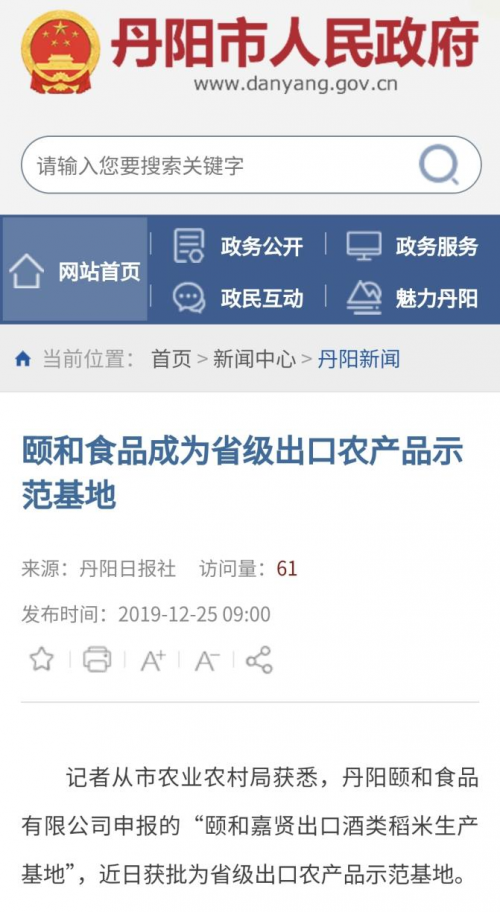 2019年清酒大师赛,“福寿海”清酒凭借其出色的品质及口感,获得了巴黎纯米大吟酿金奖,也是中国唯一获得金奖的清酒,从此“福寿海”在全球清酒界声名远播,中国产清酒达到世界级水平。其销量也一样领先,纳税也遥遥领先,多次获得政府纳税奖项。公司“颐和嘉贤出口酒类稻米生产基地”2019年就获批省级出口农产品示范基地,清酒产品不仅畅销国内各地,更远销欧美、东南亚等40个国家和地区。