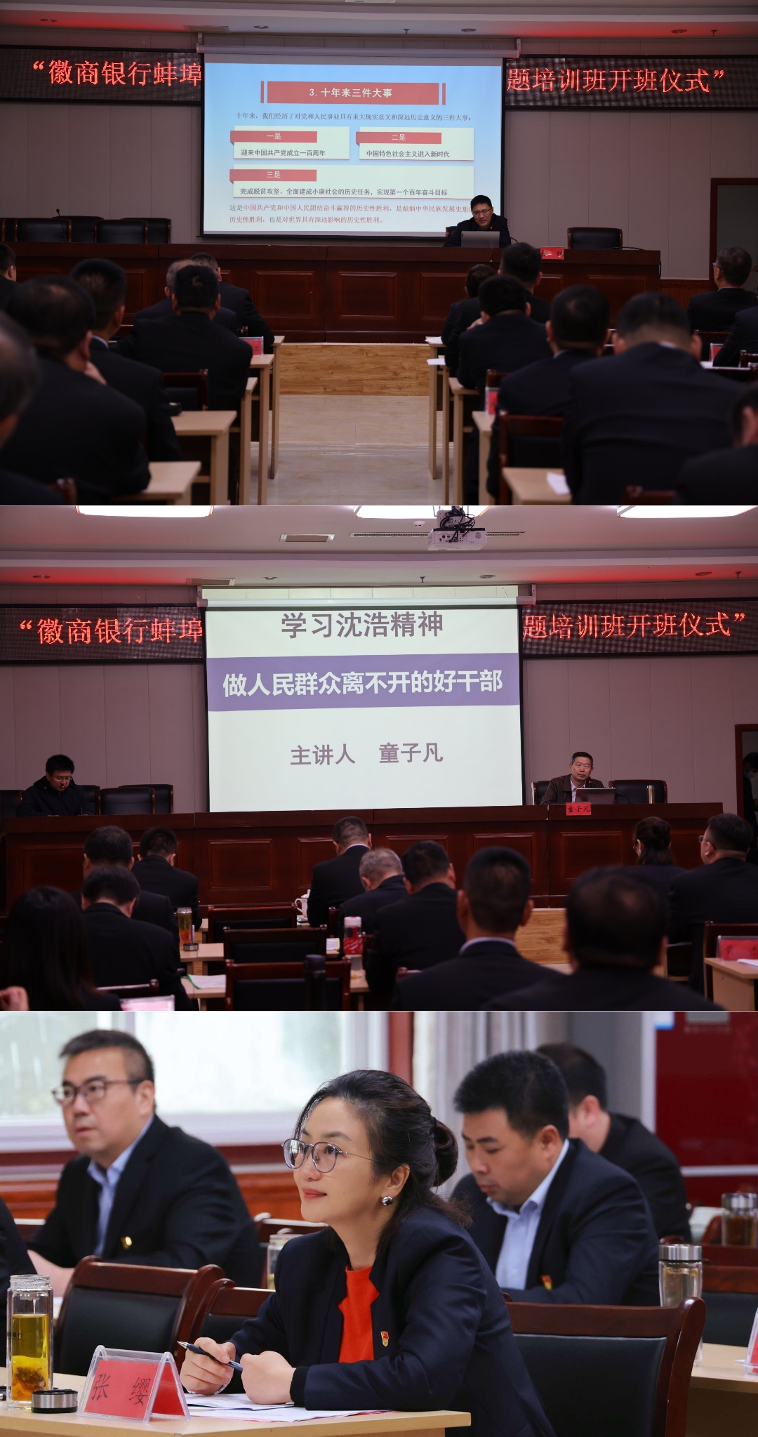 为进一步深入学习贯彻党的二十大精神,捍卫“两个确立”,增强“四个意识”、坚定“四个自信”、坚决做到“两个维护”,切实提高分行党员管理人员理论素养和履职能力,11月10日下午-11月11日下午,蚌埠分行在中国农村改革主要发源地小岗村举办学习党的二十大精神专题培训班。分行领导班子成员,各党支部主要负责人,各支行、分行各部室主要负责人参加培训。 ![]() 开班仪式上,安徽财经大学党委副书记杨烨致辞,分行党委书记、行长张缨作动员讲话并提出三点意见:一是分行全体党员要充分认识到学习宣传贯彻党的二十大精神是当前和今后一个时期的首要政治任务, 要在全面学习、正确认识和贯彻落实上下功夫;二是要不折不扣落实各项培训要求,切实做到学有所获、学有所成、学有所用,增强学习的自觉性和实效性;三是培训班后要结合此次学习内容撰写学习体会,及时召开会议组织参训人员交流学习感悟,分享学习心得。 ![]() 本次培训历时一天半,采用理论学习授课、党性实践教学结合的方式进行,特别邀请了安徽财经大学马克思主义学院教授、院长、博士生导师张斌围绕《高举中国特色社会主义伟大旗帜为全面建设社会主义现代化国家而团结奋斗——学习党的二十大精神》;中共安徽省委党校特聘教授、中共滁州市委党校原副校长童子凡围绕《学习沈浩精神——做人民群众离不开的好干部》等内容进行了专题授课。同时,参训人员在小岗村大包干纪念馆、当年农家、沈浩纪念馆等红色教育基地开展党性实践教学。培训期间,参训人员还集中观看学习了红色影片《第一书记》。 ![]() ![]() 此次专题培训班引导教育分行广大党员管理人员深入学习贯彻党的二十大精神,传承大包干精神和沈浩精神,圆满完成了各项培训内容,达到预期效果。下一步,蚌埠分行将以本次专题培训为契机,把党的二十大精神学习成果与分行实际工作相结合,确保顺利完成年底各项工作的收官,助力蚌埠分行高质量稳健发展。 |