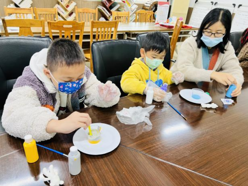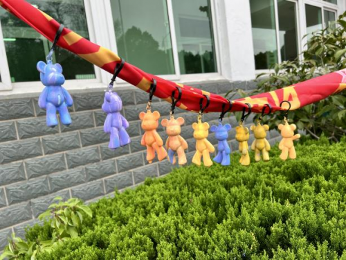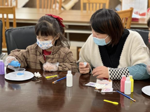 减压神器“流体熊” 互动合作“乐融融” 志愿者拿出当天的彩绘手作主角——减压神器“流体熊”,孩子们看到可爱的小熊都已经迫不及待,摩拳擦掌跃跃欲试。志愿者给大家讲解了“如何进行颜色搭配更好地完成流体熊”,听完老师的建议,孩子们戴好手套,挑选流体配色,信心满满地开始操作。随着颜料的倾泻而下,孩子们发出惊叹:“太解压了,小熊们都穿上‘新衣’啦!”