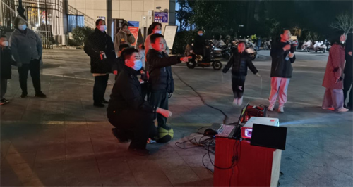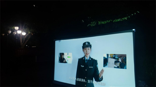 在辖区内多个小区门口,淮安市淮海路派出所民警拉出反炸横幅、设置好投影机、音响、幕布等工具,一边播放《我和我的祖国》、《红海行动》、《巨额来电》等电影,一边穿插播放自己制作的反诈宣传片,介绍常见的电信诈骗手段,并向市民群众发放反诈宣传单,引导大家下载安装国家反诈中心APP。同时,还号召市民群众积极参与反诈宣传,发动身边亲朋好友使用国家反诈中心APP。