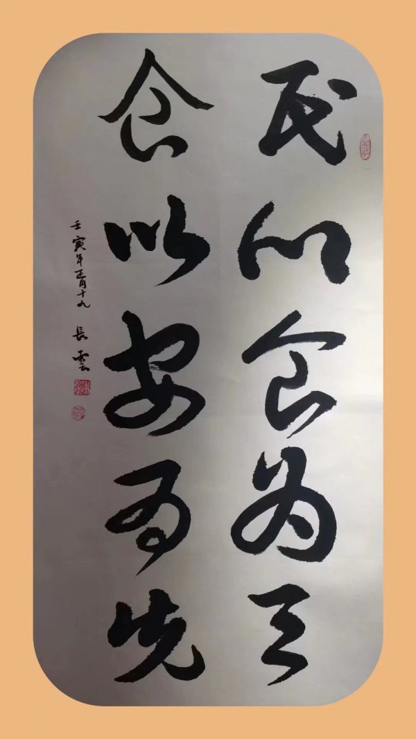 (朱长云书法:“民以食为天” 中国人吃中国粮最安全) 二、民以食为天 中国人民以“民以食为天”为理论依据,中国“重食”思想和“重养”传统文化理念发展至今,其“天人合一”和“道法自然”的传统文化精髓始终伴随着社会的发展和人民健康的发展方向! 中国古代根据气候对一年进行的节令划分。即指立春、雨水、惊蛰、春分、清明、谷雨、立夏、小满、芒种、夏至、小暑、大暑、立秋、处暑、白露、秋分、寒露、霜降、立冬、小雪、大雪、冬至、小寒和大寒。