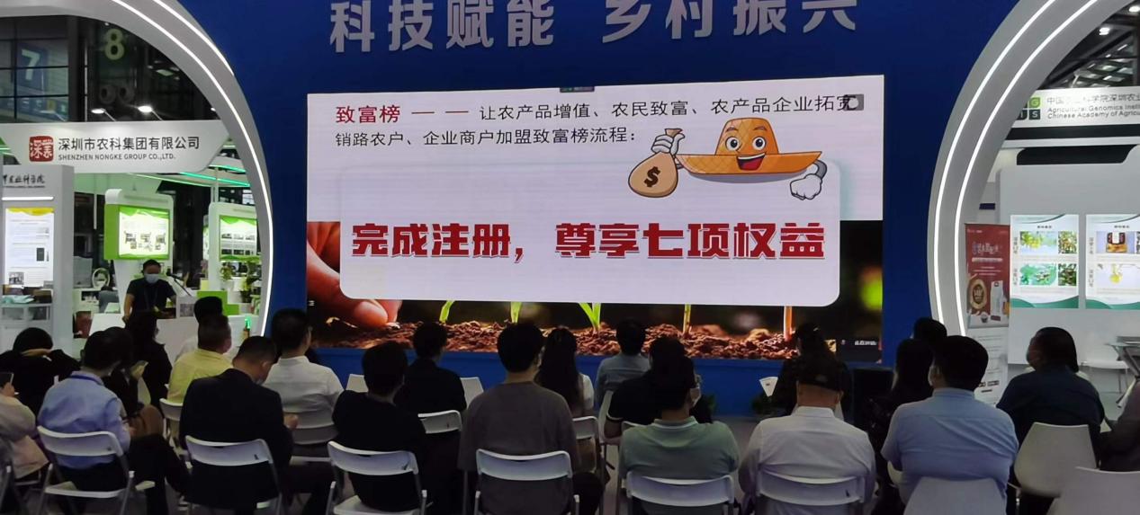 农运帮项目在本届高交会农业农村部展区(福田展区)8号馆,主题为“真心助农、义利相生”。农运帮项目展示活动在深圳办事处的大力支持和配合下,取得圆满成功。农运帮项目和来自中国农业科学院、中国水产科学研究院、中国热带农业科学院及其下属研究所在内的39家科研单位和深圳市农科集团有限公司等10余家农业高新技术企业,携200余项最新科研成果和高科技产品亮相本届高交会,通过视频、图片、模型、实物、成果册等方式,重点展示和推介了农运帮项目的支农助农的宗旨和共同富裕的分配模式等,充分体现了农运帮项目在全面推进乡村振兴方面发挥的重要作用,得到社会各界和媒体的广泛关注。本届高交会上,农运帮项目获得本届高交会优秀产品奖。