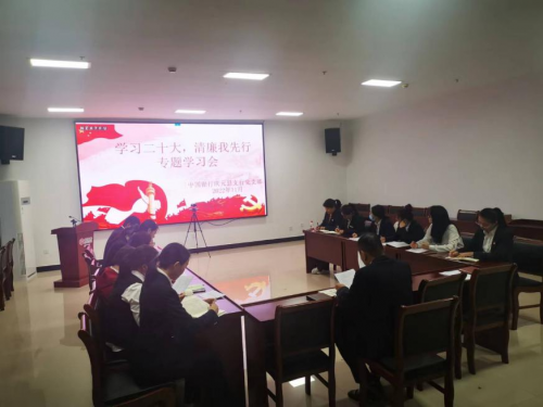 为深化清廉金融文化建设,中行丽水庆元支行党支部于11月21日组织开展了以“学习二十大,清廉我先行”为主题的专题学习会。支部纪检委员、副行长刘锦川主持会议,支部党员、入党积极分子以及青年员工参会。