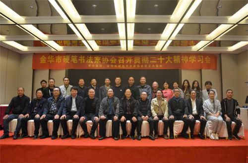 11月17日14:00点,浙江省金华市硬笔书法家协会在武义红泥商务酒店,组织召开了二十大报告学习研讨会,参会理事30名。