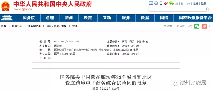 据中国政府网11月24日消息,国务院发布《关于同意在廊坊等33个城市和地区设立跨境电子商务综合试验区的批复》(以下简称《批复》)。