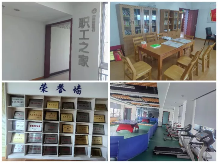 设于各网点的“职工小家”,因地制宜,根据网点面积大小,设有健身小场所、读书小书角、减压小驿站、员工小餐厅、男女员工休息室等,配备有图书百余册、乒乓球桌、按摩椅、动感单车、仰卧板、椭园机、棋牌、飞镖盘等,让员工能吃上热饭、中午能午休,班前班后可活动筋骨。