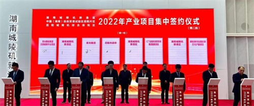 今天上午11时18分,湖南城陵矶新港区2022年第二批产业项目集中签约仪式在城陵矶新港区通关服务中心一楼大厅举行。