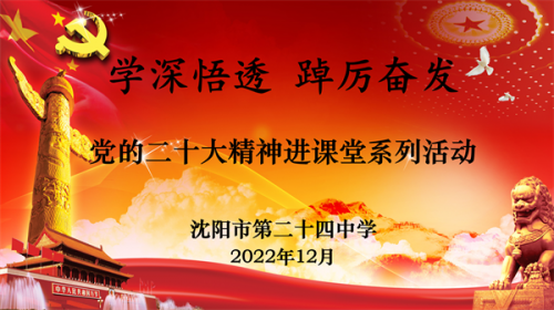 学习贯彻党的二十大精神是现在最重要的一项政治任务,沈阳市第二十四中学各项工作都紧紧围绕学习贯彻党的二十大精神来开展,党的二十大精神进课堂活动是其中的一项重点活动。学校党总支一直坚持领导干部带头学、支部集中深入学、先锋模范引领学、全校教师跟进学的原则,
