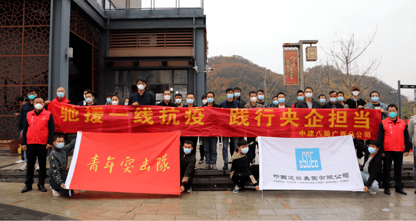 共同为桂林疫情防控出力,践行央企社会责任与担当,是中建八局广西分公司桂林经理部在此次疫情防控工作中的的担当。11月20日晚,公司成立突击队,6小时集结32名志愿者支援一线。截止11月26日18时,突击队改造酒店8所,调度协调防疫指挥部疫情防控车辆近180趟/次,搬运防疫物资防护套装3000余套、物资400余箱。此外,突击队还承担了集中消杀点垃圾医疗废品清理打包、隔离酒店的消杀、保洁任务等工作。