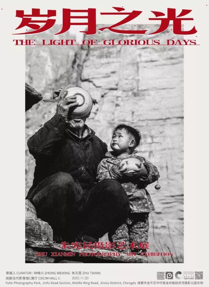 岁月之光——朱宪民摄影艺术展 THE LIGHT OF GLORIOUS DAYS ZHU XIANMIN PHOTOGRAPHY ART EXHIBITION 艺术家朱宪民Zhu Xianmin 策展人钟维兴 Zhong Weixing 朱天霓 Zhu Tianni 公众展期2022.11.20 - 2023.04 地点成都当代影像馆C展厅 主办成都当代影像馆 本次展览朱宪民先生始终坚持现实主义的创作手法和艺术表达,不猎奇、不烧脑、更不哗众取宠,他只是让我们看到不同时期老百姓“吃什么、穿什么、家里摆什么”,他仅仅是用他的爱与情感去表现并追忆养育了他的那片土地。他说“我被质朴的乡亲、浓郁的乡情、浓重的乡音所感动,我的手在颤抖,取景框模糊了,我猛然清醒——这才是我真正要寻找的艺术真谛!” 成都当代影像馆借由本次展览收藏了61件朱宪民摄影作品;并于11月19日晚的摄影周“影像之夜 ”活动,由成都当代影像馆馆长让-吕克·蒙特罗索向朱宪民颁发了收藏证书。 部分现场图