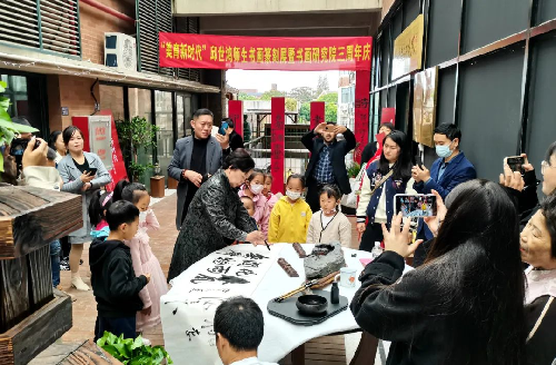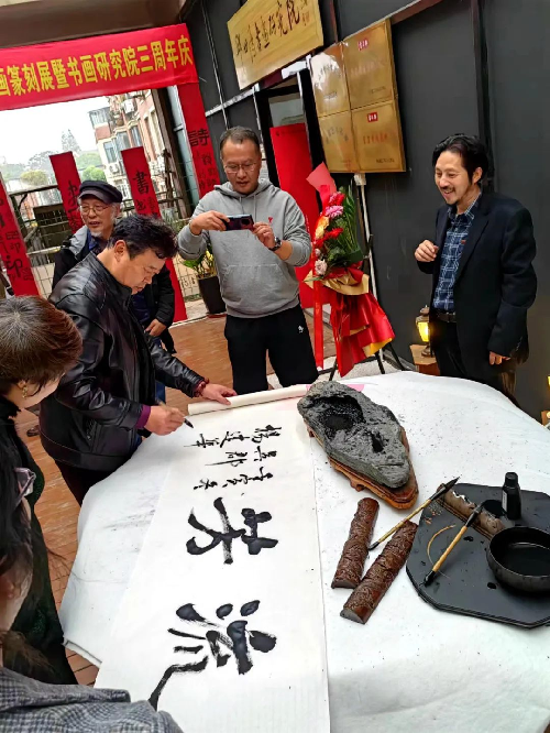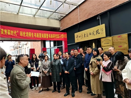 ![]() 2022年11月19日,天朗气清,风光宜人。在昆山花桥香榭丽大道788号邱世鸿书画研究院举办了"美育新时代--邱世鸿师生书画篆刻展",少长咸集,嘉宾如云。 上午九时名家签到题词,长卷铺展,花篮映日。嘉宾领取新书《邱世鸿师生书法篆刻集》及文化礼品。嘉宾陆续到来,题词满长卷,豪气冲斗牛。来自南京,苏州,昆山,上海等地宾客,络绎不绝,共同庆祝师生展及书画院成立三周年系列活动。苏州代表团等送来花篮表示祝贺,书画题贺尤为醒目。 ![]() ![]()