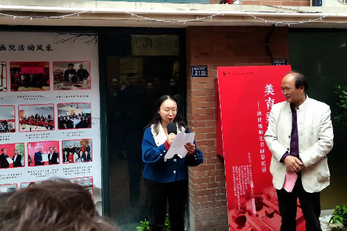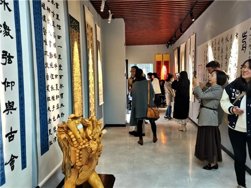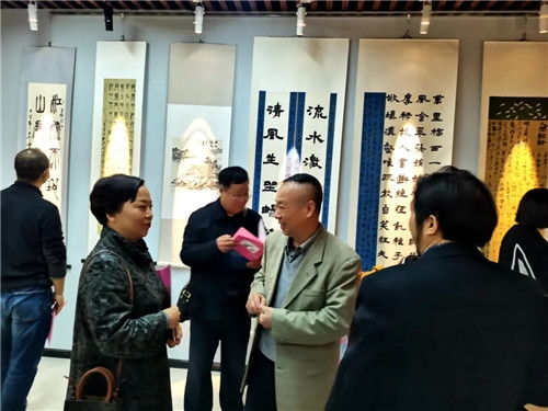 十点开幕上,俞建良先生友情主持,南京文联一级调研员张跃定先生对此次展览作了高度评价,强调传统艺术与中国文化之关系。中国印学博物馆馆长顾祥森发来贺信,对高等教育成果展意义作了概括并预贺成功!南京楹联学会会长袁裕结合诗词与书法作了发言。顾工博士代表苏州博物馆对学术与艺术之关系进行了概述,并祝贺师生展开创了地方好风气。卢月龙代表地方书协对文化综合修养与艺术教学之关系问题作了发言。王清代表昆山书协对书法院对地方文化建设的贡献表现感谢。学生代表胡珏平丶薛马娴发表学习心得感谢师恩。最后邱世鸿致答谢词。