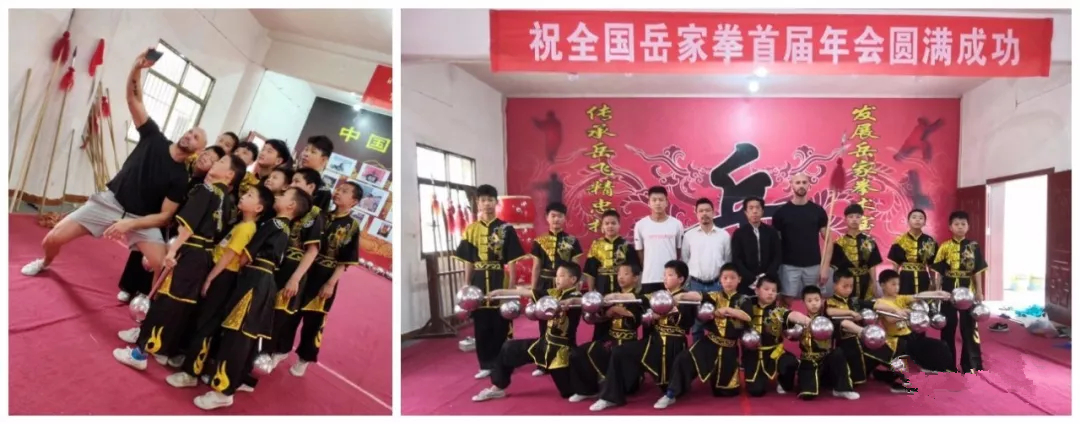 12个小时的飞机,5个小时的高铁,3个小时的大巴,中途还要换乘短途公交,法国到香港,香港到深圳,深圳到武汉,武汉到武穴(湖北东部边陲小镇),交通工具换了一个又一个,崎岖的路走了一茬又一茬。对于一个只会几句夹生中国话的法国青年小伙子,其行程之难可想而知。然而,什么也挡不住出生法国南方一座小镇的岳家拳爱好者霸俊的学习热情和激动的心。五日十五日,在阳光灿烂的初夏时节,他终于来到了仰慕已久的位于湖北省武穴市的国家非遗岳家拳传承基地岳飞文武学校。风尘仆仆的他还未放下行李,就一头钻进岳飞武校训练厅,施大礼,请求国家非遗岳家拳国家级传承人张业金先生收他为徒,教他岳家拳。