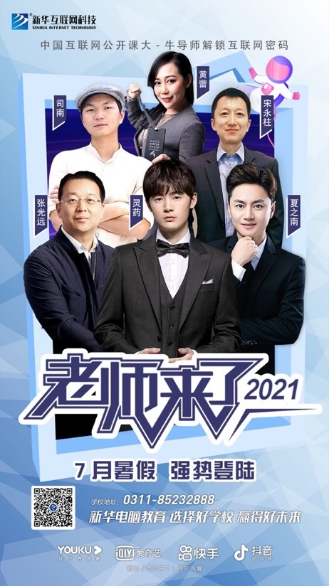 聚焦互联网行业前沿,为青年学子奉上思想盛宴 “青年学子是网络生态的塑造者”,“当代青年是‘网生代’,伴随着互联网而成长,也深刻影响和塑造着网络社会”。互联网催生新职业,青年就业观发生着改变。新华电脑学校聚焦当下青年学子发展需求,发起《老师来了》公开课,解青年之忧,助青年成长。 《老师来了》邀约互联网行业各领域的资深从业者——知名电竞选手灵药、 森雨漫创始人司南、新榜学院院长夏之南、国美互联网生态科技公司总裁宋永柱、深圳市城市规划设计研究院副总规划师张光远、国货畅销品牌潘达联合创始人黄蕾等6位互联网大咖,担任教育合作导师。