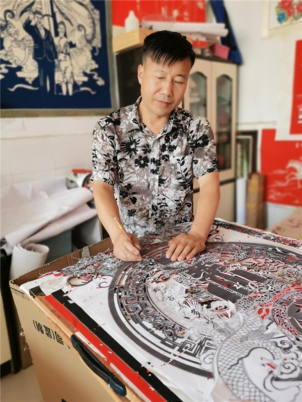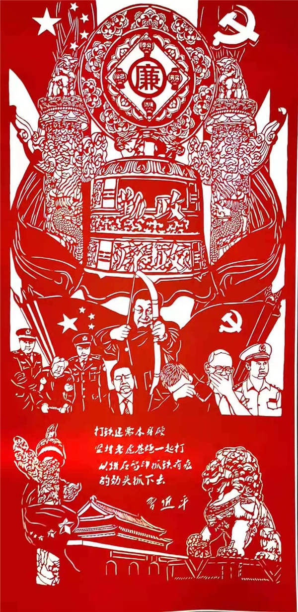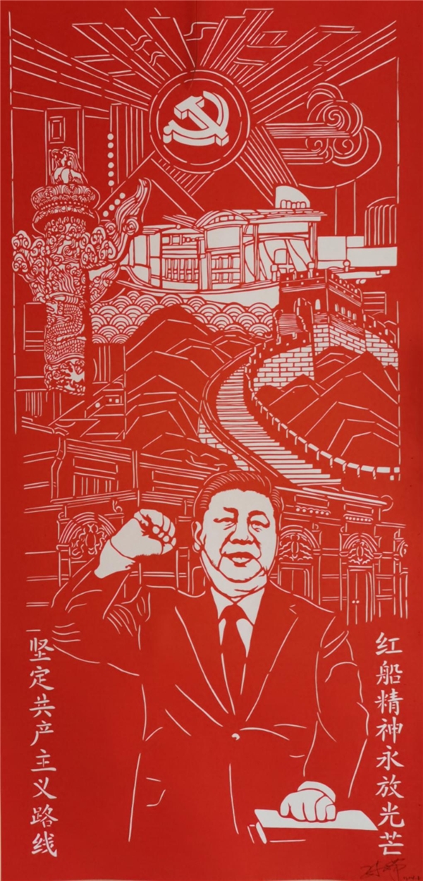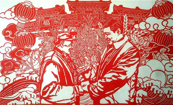 张文芳作品赏析 张文芳之所以能作精密复杂的剪纸作品,原因在于他的刀法精微至极!刀刀相倾,刀刀相映,刀刀相生,对创作对象的塑造早已经是意在刻之先,脑海里的空间布白严丝合缝,一切尽在掌握之中,这就是大国工匠可作“极细极微”的修养。在纸上可以剪得锋纤往来,可以剪得丝毫不差,牵丝映带,游刃有余!剪刀与手相联,亦与心相通,每一件精至入微的剪纸作品,是精确驾驭工具所成,也是精确释化心意所工!用心剪纸莫不如此!秀气灵巧,繁密工整,都出于心,成于心!由是,他的剪纸常有我心使之然,不可复成的珍贵!在艺术大展种夺得金奖,当然是功到自然成。许多艺术机构、展馆收藏他的作品,亦是剪纸类作品的镇馆上品! 剪赋盛世,纸谱功勋。张文芳的剪纸作品,拥有中流砥柱的文化属性。这是因为他的创作都有极大的正能量!艺术载道的思维严谨,表现精彩,通过“三分刀工七分染”的精益求精,为大国领袖作史诗般的创作,至今已经形成了完整而宏大的专题。技法精研,主旨弘大,他把家国精神、领袖情怀、国运昌盛一一剪入作品,为时代创作精神丰碑,为神州谱写壮丽篇章!涌涌正能量,可以春秋永传! 著名书画评论家罗成 2021年7月6日