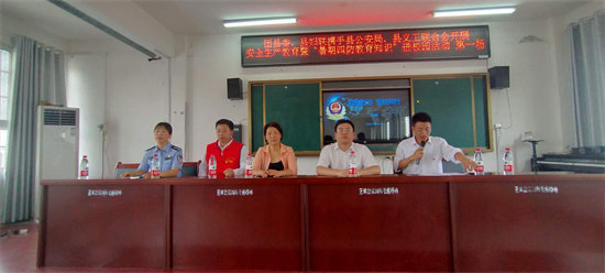 暑期将至,为提高广大家长及学生假期安全意识,时刻绷紧安全防范这根弦,6月30日下午团县委、县妇联联合县公安局、县义工联合会共同开展了安全生产教育暨“暑期四防教育知识”进校园活动在县第三初级中学举行。为学生送上假期安全防范知识,确保学生们度过一个安全而有意义的假期。