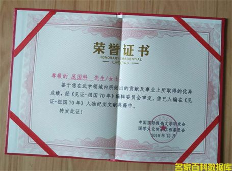 庞老师于2016年,接受乐昌新闻采访,其传授的学生2016年(韶关赛区)拳术获得三等奖。2020年第四届世界武林大会,武术网络选拔大赛获得铜牌二枚优秀奖三名,2020年北京,国际武术网络电视大赛,获得冠军亚军五枚奖牌,兹授予教练证,2020年世界武术日征文大赛,荣获优秀组织奖荣誉证书。中国武术名家—庞国科的功夫照和进拳道于2017年入编中国邮政中国集邮中心网,获得国家荣誉邮票纪念发行,电话卡纪念发行,2017年,中国武术名家—庞国科的功夫照和进拳道入编,国家体育总局主管的大型史册央级专刊中华武术35,2017年入选全国百强武馆。2018年,中国武术名家—庞国科的功夫照和进拳道入编,华夏武林精英大典,2019年,中国武术名家—庞国科的功夫照和进拳道入编,见证祖国70年,荣获武学贡献荣誉证书,2019年,中国武术名家—庞国科的功夫照和进拳道入编,华夏武林精英大典第二卷,荣获华夏武林精英荣誉称号,2020年,中国武术名家—庞国科的功夫照和进拳道入编,当代中国武术影响力人物,荣获武术贡献荣誉证书,2020年,中国武术名家—庞国科的功夫照和进拳道入编,中国武术家2021年史籍性日历,荣获优秀传承人证书,2020年,中国武术名家—庞国科的功夫照和进拳道入编,中国当代武术传承人大典,荣获武术卓越成就荣誉证书,2020年,中国武术名家—庞国科入选,中国武术名家人才数据库,荣获武术建树荣誉证书,2021年,中国武术名家—庞国科入编,当代中华武坛名人榜,荣获武学成就荣誉证书,2021年,中国武术名家—庞国科入选,第二十一届中国世纪大采风暨CCTV电视人物表彰大会题写,访谈嘉宾庞国科,扬中华武术神威,铸民族精神丰碑,走进CCTV《智慧中国》栏目组,荣获表彰大会颁发的奖杯和中国武术传承名家荣誉证书,百佳媒体报道宣传!