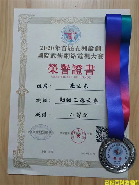 庞文东,生于2000年,祖籍四川南充西充,户籍广东韶关乐昌,从小酷爱武术,我的恩师是,中国武术名家庞国科,跟随师父学习进拳道功夫至今,现为乐昌市金华武术俱乐部,武术队队长,进拳道传承人,国家三级武术教练,国家二级武术指导,2017年参加乐昌金华武术对外表演,荣获奖励荣誉证书,2020年师父的带领下参加,第四届世界武林大会武术网络选拔大赛,获得通臂拳季军奖牌,进拳道双节棍优秀奖,2020年师父的带领下参加,北京首届论剑五洲国际武术网络电视大赛,获得三路长路亚军奖牌,参赛运动员证,2019年跟师父合影照入编,华夏武林精英大典第二卷,2020年跟师父合影照入编,当代中国武术影响力人物,2020年跟师父合影照入编,中国当代武术传承人大典,2021年跟师父合影照入编,当代中华武坛名人榜!