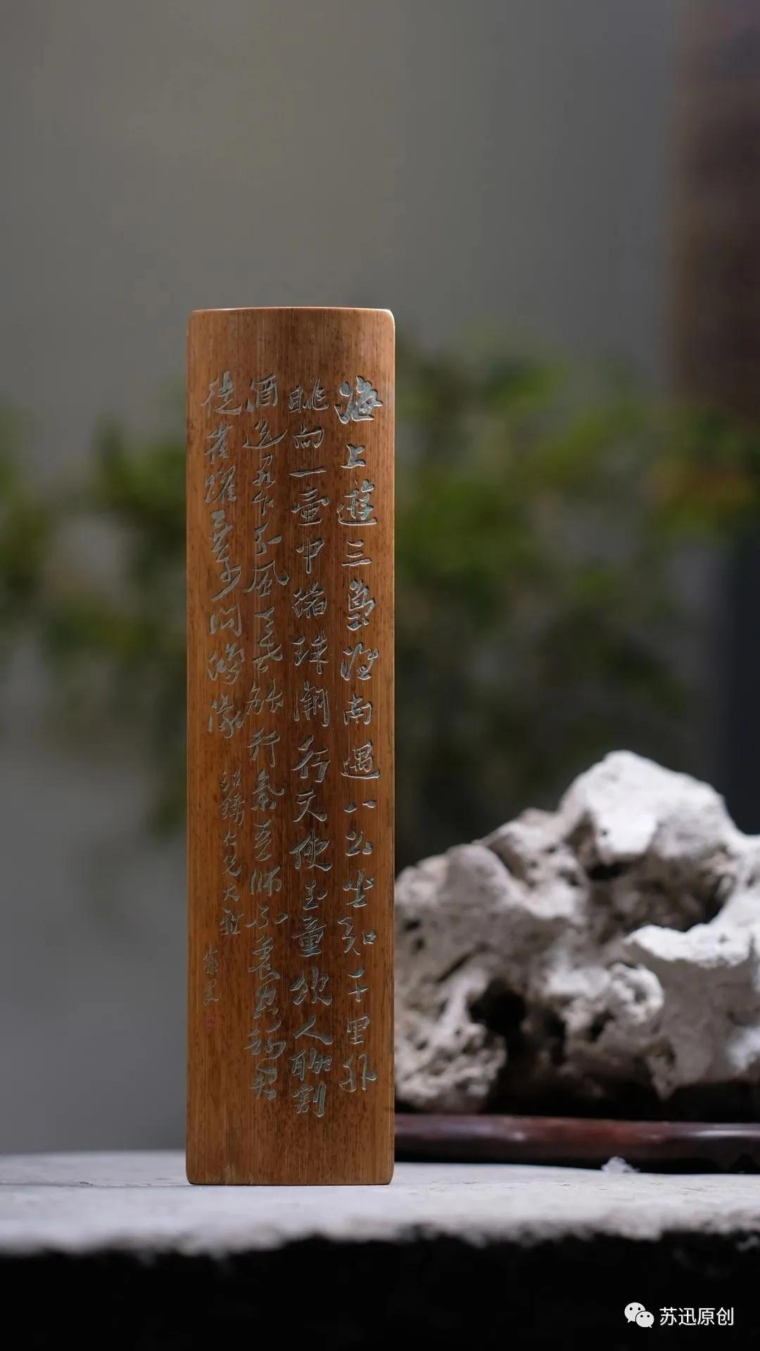 他还是保持着旺盛的探索精神和实践欲望,抓住每一点业余时间,争分夺秒在刻。如今看来,我怕他因为雕刻强度太大而影响艺术品质的担忧是多余了,技艺这东西总是熟能生巧,是必须保持一定的练习强度才有望层层递进的。当代人面对发达的资讯,一切独门技艺和隐秘诀窍都已经再难画地为牢,同时也正是因为一切来得太过便捷简易,以致反而使人生出轻漫的心。现代人都太过聪明,往往不肯下死功夫下死力气,基础没有砸瓷实就喜欢奢谈风格、境界、韵味,所以很难取得实效。中国书画不就是看个线条嘛,有了线条才有构图,才能谈所谓意境。竹木玉石等雕刻艺术,又怎么逃得脱线条这一说呢。他看到别人成功的作品,总是万分艳羡,总是一门心思在捉摸:究竟怎样才能刻出如此精彩纷呈的线条来呢?陈峰是不疯魔不成活,他也是一位老老实实的智者。 艺术总是在变化之中动态生存,真正的艺术家都有一个显著特点,他们的作品不会“结壳”,因此千万不要轻视每一个走在成长路上的探索者。跟陈峰认识三四年时间,他的技艺已然翻天覆地变化,呈现出一日千里之势。现在,一切自然而然地发生着演变,他镌刻的速度缓慢下来,更加从容不迫和审慎敬畏。在他的刀下,画面与笔意开始顾盼生情。这与他的勤奋分不开,更与他的眼界和追求分不开。长期在一个地方生长、学艺,往往容易囿于成规和地望,现代社会的好处就是可以轻易打破这种局限。当然,跟所有领域一样,具备了破壁而出的历史条件和社会基础,能否真的抽身出来,还要看你自己的心愿。或曰,灵性。 很多时候,灵性是不一定出现在聪明人身上的。 发表于2020年10月16日《江南晚报》副刊