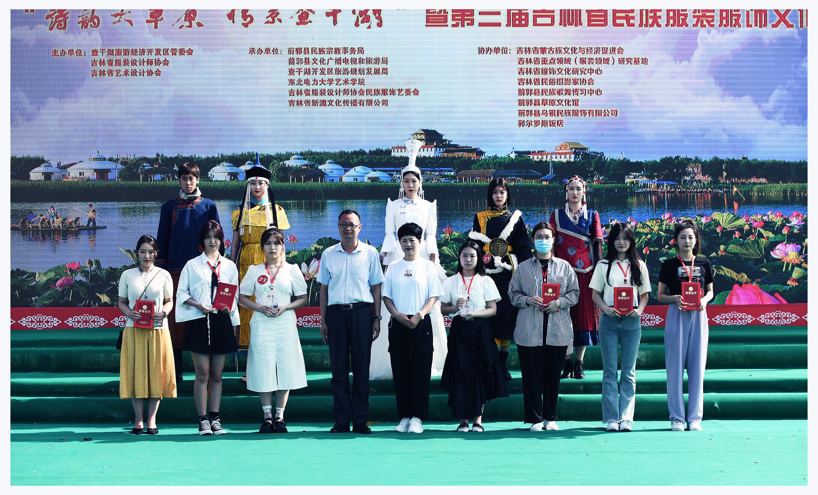 决赛期间,省内多家群众文化团队和专业文艺团体还表演了《欢乐的草原》、舞蹈《渔光曲》、《歌唱蒙古骑兵团》、《华夏儿女心向党》等歌舞节目。 通过举办第三届吉林省民族服饰文化节,进一步挖掘和展示民族服装服饰资源,充分展示民族服饰的独特魅力,打造民族文化品牌,推动民族文化交流合作及提升吉林省蒙古族民族文化影响力和号召力有着深远的意义。 (东北电力大学艺术学院提供)为庆祝中国共产党成立100周年,推动郭尔罗斯蒙古民族服饰文化和查干湖旅游文化有机融合,7月10日下午,前郭尔罗斯“诗韵大草原 情系查干湖”暨第三届吉林省民族服装服饰文化节在查干湖景区内举行。活动由查干湖旅游经济开发区管委会、吉林省服装设计师协会、吉林省艺术设计协会主办。前郭县民族宗教事务局、东北电力大学艺术学院、查干湖旅游经济开发区旅游局、前郭县文化广播电视和旅游局、吉林省服装设计师协会民族服饰艺委会、吉林省新澳文化传播有限公司联合承办。