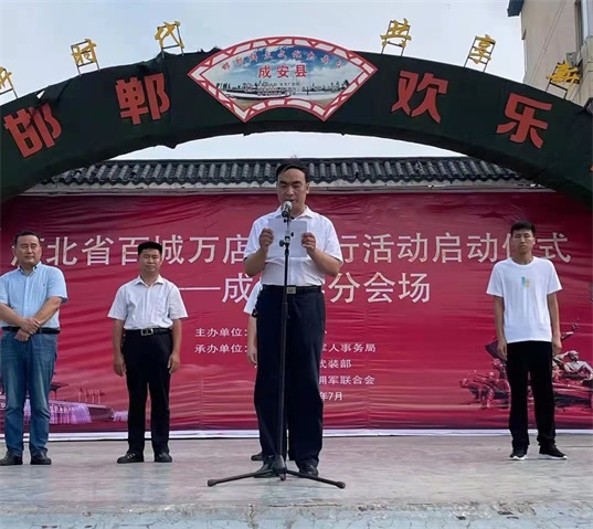 为深入拓展社会化拥军优属工作,在“八一”建军节前夕掀起社会化拥军的新高潮。为军人军属、退役军人和优抚对象提供优先、优待服务,浓厚“让军人成为全社会尊崇的职业”的社会氛围。7月16日上午9点,河北省、市、县三级同步举办的“百城万店拥军行”活动成安县分会场启动仪式在成安县十二生肖广场举行。河北省“百城万店拥军行”活动成安县分会场启动仪式,由成安县双拥办主办;由成安县退役军人事务局、成安县人民武装部、成安县爱国拥军联合会承办。 参加此次的活动有:成安县双拥办副主任、退役军人事务局副局长曹志锋,成安县人民武装部国教办副主任刘建明,成安县拥军联合会副会长郭广振、李艳敏,成安县拥军联合会秘书长张耀福,成安县双拥工作领导小组成员单位、爱国拥军联盟成员单位、退役军人志愿者等100余人参加。 ![]()