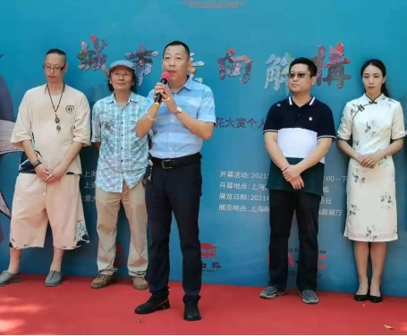 会议由周千恩主持,虹莱文化有限公司董事长邵震先生、醉白池主任张琦先生、上海师范大学美术系主任,油画研究生班导师黄启后老师、浙江孟岩美术馆孟岩先生、 胡亚强先生、 徐惠忠先生、 陈紫帆女士等书画界知名人士出席开幕式。