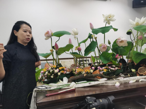 梁美粧花艺表演 开幕式上的花道表演让大家大开眼界,原来世界花道源于中土,日本花道源自中国,世人只知有日本花道,可惜作为花道艺术之祖的中国却将这一门独有的千年艺术给失落了,所幸,在祖国的宝岛台湾这一艺术形制被很好地完整的保存了下来,使得今日得以一窥真容!这就是我们伟大优秀的中国传统文化艺术的美!