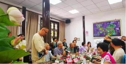 嘉宾剪彩 开幕仪式后,画家及嘉宾一行还在园内醉白讲堂举行了学术研讨会。磁州窑老师林峰根、敦煌•罗兰智能交互古筝学堂执行校长苏慧慧等也前来参加、陶俊先生,董桢先生、、寇绘军先生、欧阳荣德先生、徐招兵先生、邵勇先生、陆颖凤女士、陈绍琼女士、杨伟民先生、柳金先生等多位艺术大咖参加研讨,更有梁美粧花艺表演、马淑华古筝演奏、以及徐惠忠大师挥毫泼墨等精彩演出组成了这次难得的中西文化融合的饕餮盛宴。