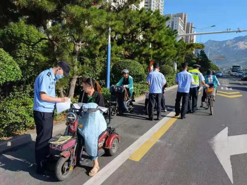 行动中,泰安交警岱岳区大队结合辖区实际,选取月季花园路口、泰山大街光彩北门路口、东岳大街体育场路口等13个早晚高峰期电动车流量较大的路口设治理点,与岱岳分局加强部门联合,开展“一盔一带”专项整治行动,对电动车、摩托车不遵守交通信号灯、违法载人、逆向行驶、不按规定车道行驶、不戴安全头盔等交通违法行为进行整治,形成高压震慑。同时积极向广大交通参与者讲解规范佩戴安全头盔的重要性,让群众铭记“一盔一带”安全出行的警句,自觉摒弃交通陋习。对未佩戴安全头盔的电动车骑乘人员进行登记、通报,用好教育、警告手段,全面提升路面查处率、劝导率,形成见违必究、见违必劝的整治氛围。(尹承涛 通讯员 黄美弟)
