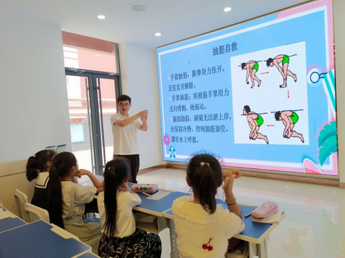 志愿者教师教给学生自救知识 课堂最后,为巩固课堂内容,实践队成员为学生们准备了设计防溺水安全教育宣传画环节,让学生们自由联想,将本节课所学知识运用宣传画的形式表示出来,张贴在家中或者社区安全宣传栏,既时刻警惕自己,也帮助他人提高防范意识。此次防溺水安全教育活动,不仅增强了学生们的安全意识,还让他们掌握了防溺水的有关知识和技能,有效提高了学生的自我保护能力和避险能力,促进了平安校园建设。