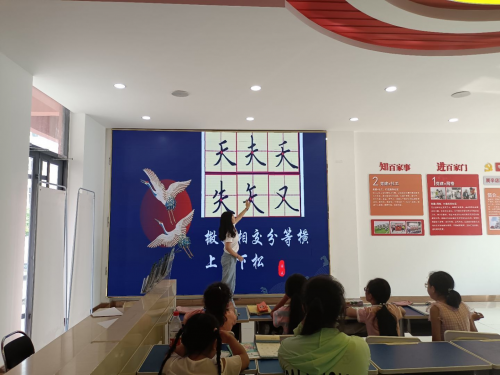弘扬传统文化,展示书法魅力 ——山师大社会实践队为辛店镇社区孩子开设书法课 为了丰富社区学生的假期生活,弘扬传统文化和提高学生个人素养。山东师范大学“禹”青苗同行社会实践队于7月13日为社区的孩子带来一场别开生面的书法课。在开始上课之前,实践队成员为孩子们精心挑选了精美的米字格书法纸和小奖品。因现场有很多小朋友都是初学者,书法教师志愿者结合生动有趣的视频细心讲解如何握笔、运笔,并对小朋友们的书写姿势进行现场纠正。随后又对不同间架结构的字进行书写技巧的说明,并结合讲解让孩子们进行针对性练习。志愿者老师除了指导孩子们认真学写书法,还带领他们认识到弘扬中华传统文化的重要性,帮助孩子们提高书写兴趣,感受文化底蕴。