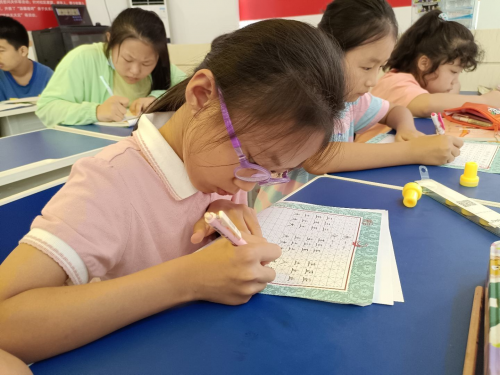 学生按照要求练习书法 硬笔书法不仅可以提高青少年儿童的气质,更可以锻炼他们的意志力。通过学习书法,能促进学生养成细致、专注、沉着、持久的学习品质,此次活动有利于发展学生的健康个性,培养他们的创新精神。此外,书法是我国汉字书写的一种传统艺术,是中华民族文化中的一件瑰宝。青少年作为国家的未来、民族的希望,更要肩负时代责任,切实弘扬传统文化。